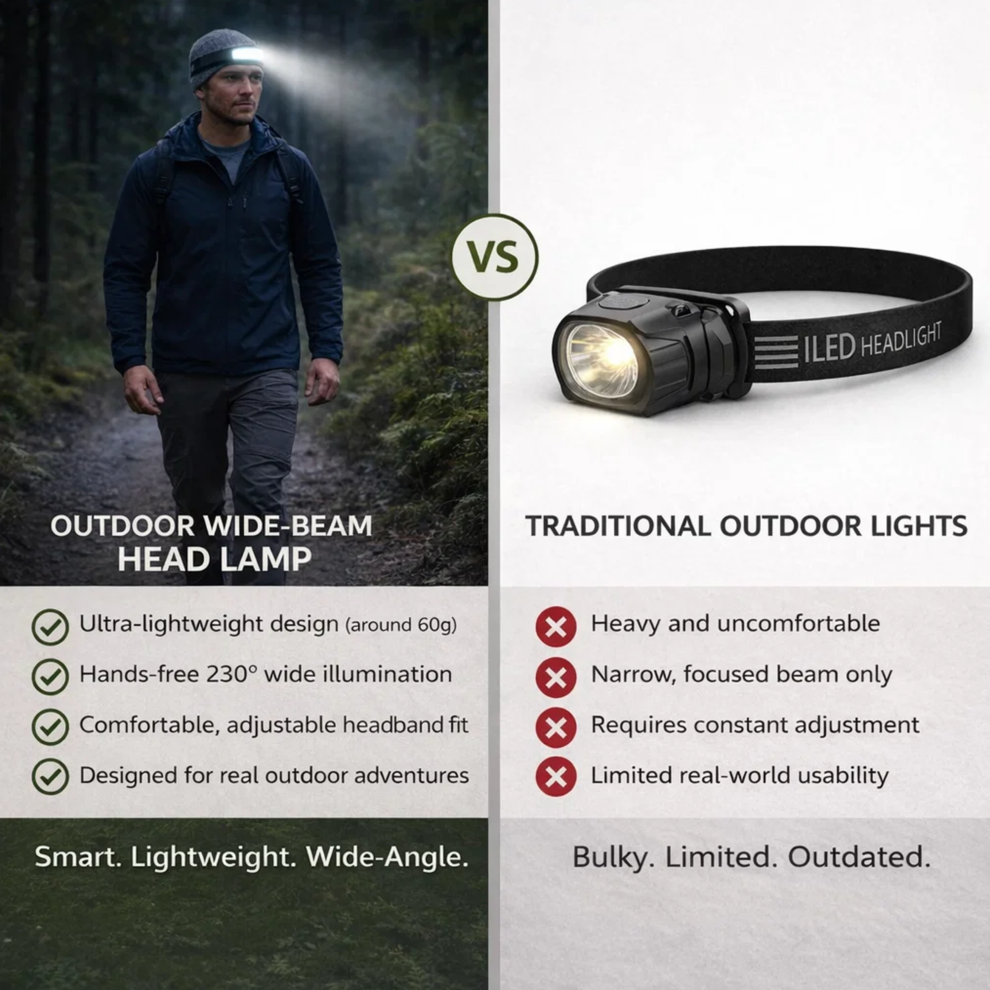 Lightweight yet durable, it’s built to handle outdoor conditions while staying comfortable and practical — perfect for hiking, camping, night walks, repairs, and everyday tasks.